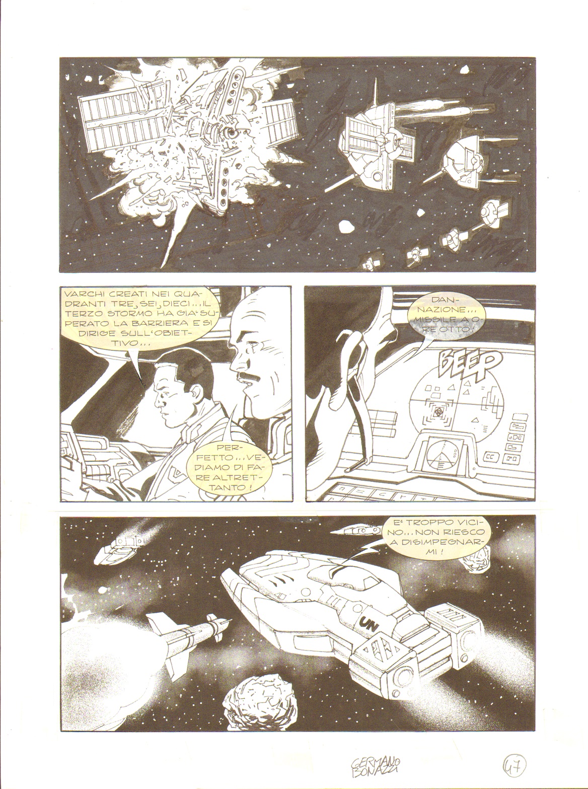 | Autore: Germano Bonazzi Fumetto: Nathan Never n. 158 pag 47 Tecnica: china su cartoncino Dimensioni: Firmata: Sė Note: PER CONOSCERE EVENTUALI IMPERFEZIONI, SEGNI DI BIANCHETTO, PARTI SOVRAPPOSTE INCOLLATE O ATTACCATE CON NASTRO ADESIVO ECC. SIETE PREGATI DI CONTATTARMI PER E-MAIL O FAX.